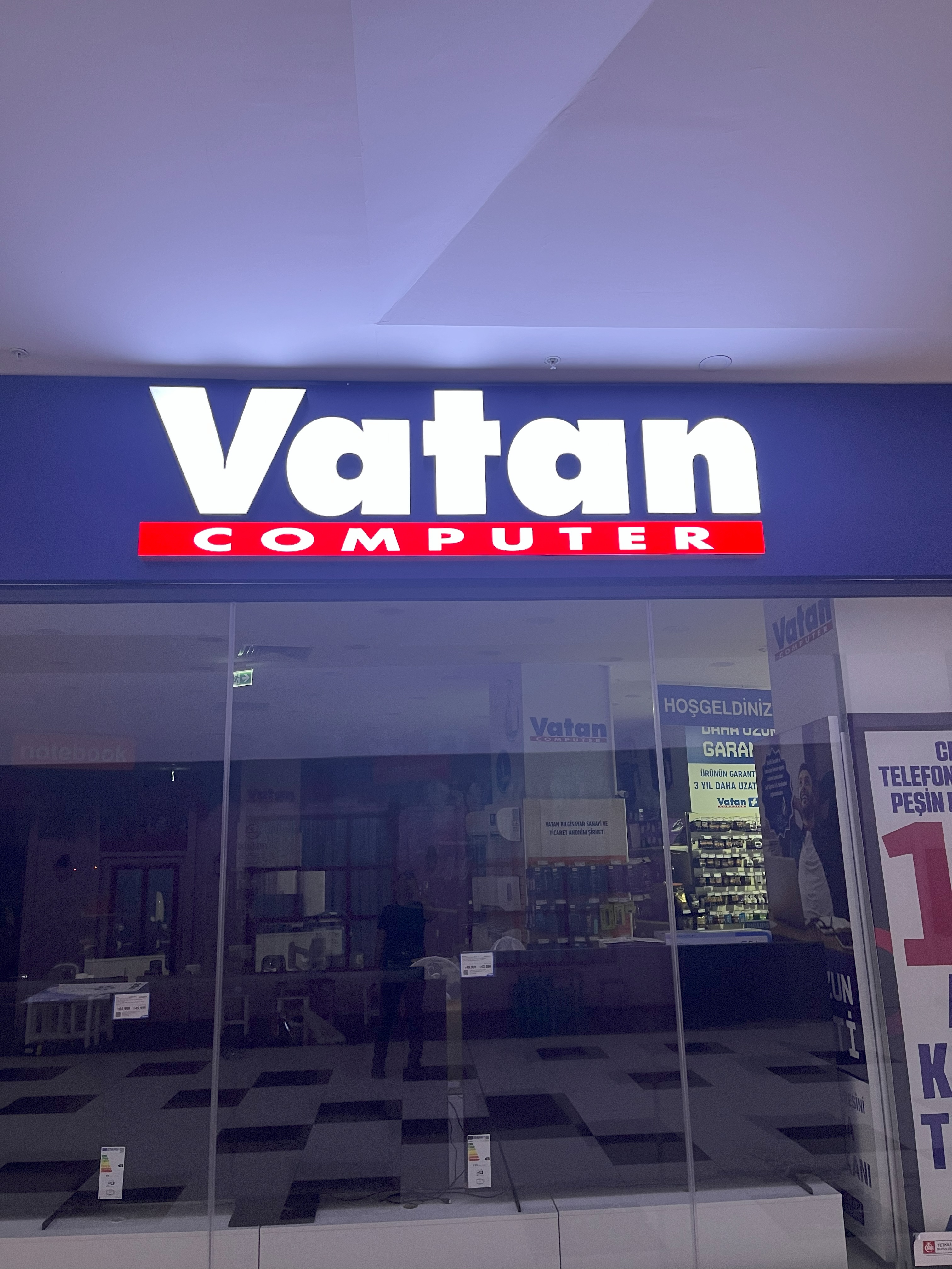 Vatan bilgisayar hazır zemin üzerine led aydınlatmalı beyaz pleksi kutu harf üretimi ve montajı